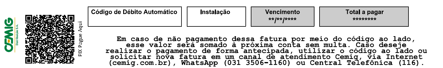 A Cemig sempre disponibiliza o QRCode PIX em todas as faturas, independentemente do valor cobrado, dando a oportunidade de pagamento ao cliente por este meio, sem necessariamente gerar um acúmulo de valores na próxima conta. Assim, no caso de o cliente receber uma fatura sem o tradicional código de barras para pagamento, fica a seu critério o pagamento antecipado via QRCode PIX ou a opção pelo acúmulo desse valor à sua próxima conta.
