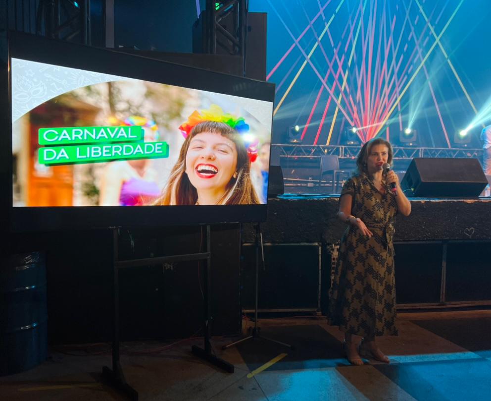 Patrocínio: A diretora de Comunicação e Sustentabilidade da Cemig, Cristiana Kumaira, anunciou o aumento de recursos para o patrocínio do Carnaval 2024.