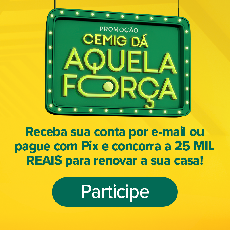 Já imaginou renovar sua casa por conta da Cemig? A promoção “Cemig Dá Aquela Força” irá premiar dois clientes da companhia, de qualquer lugar do estado, com prêmios de R$ 25 mil. Trata-se de um incentivo para que o consumidor possa utilizar as formas digitais de pagamento e atendimento oferecidas pela empresa. Aderindo aos critérios estabelecidos no regulamento da promoção, os clientes participam de dois sorteios e passam a utilizar as formas mais cômodas, modernas e seguras de quitação de contas e de atendimento.