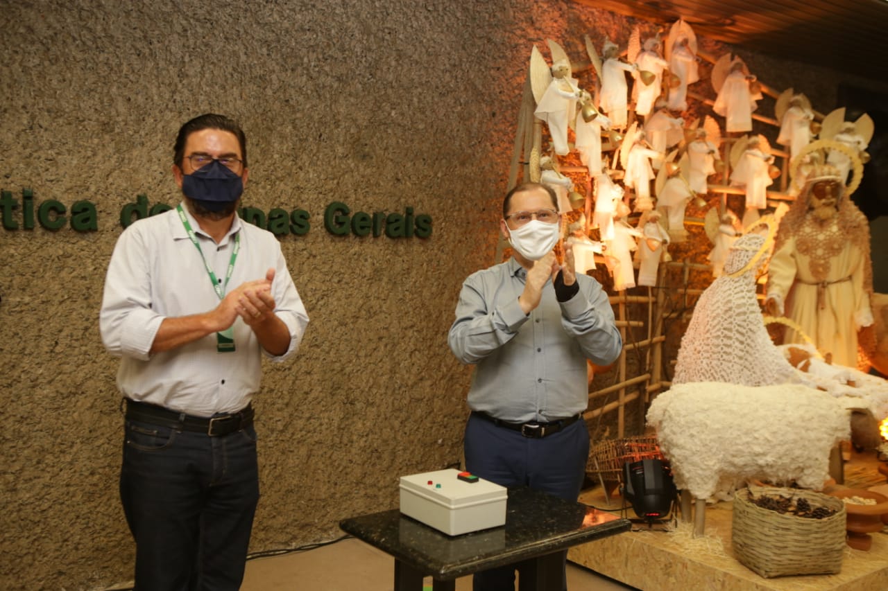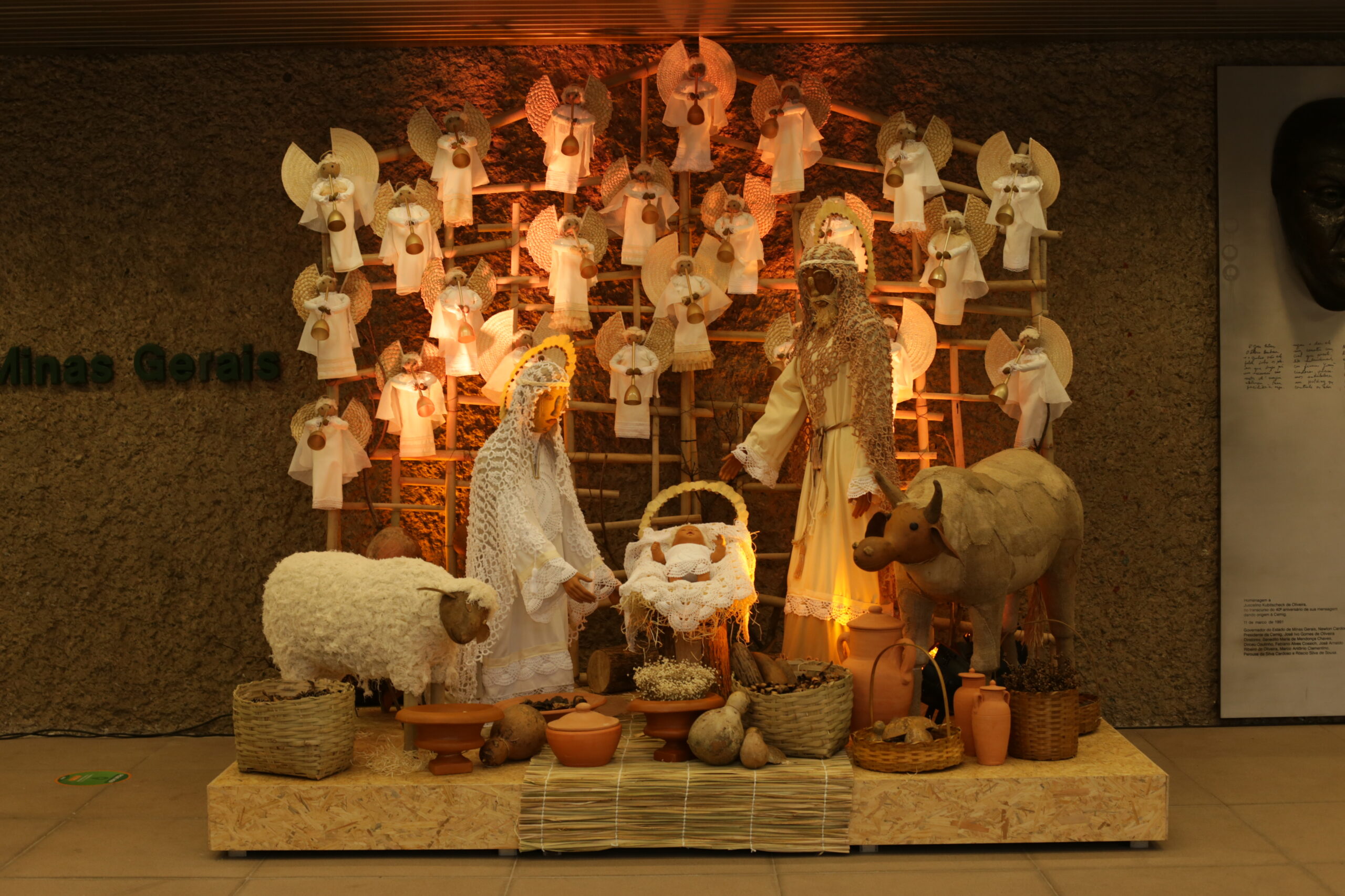 Na entrada do nosso prédio, foi montado um presépio artesanal. A obra é da cenógrafa Miriam Menezes e dos alunos do Centro de Formação Artística e Tecnológica (Cefart) da Fundação Clóvis Salgado. Também foi montada uma árvore de Natal produzida com sementes pelos artistas da Associação de Artesãos da cidade de Felício dos Santos, que fica no Vale do Jequitinhonha. Eles produziram, ainda, enfeites e guirlandas para decorar o hall de entrada.