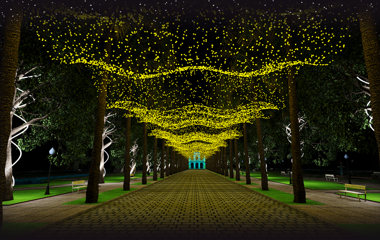 A iluminação nos mais de 35 mil metros quadrados da praça é composta por túneis de led, animais de arame iluminados e milhares de pontos de luz. As luzes se acendem por volta das 18h30. Parte da iluminação é apagada às 23 horas, enquanto o restante da praça fica aceso até mais tarde.
