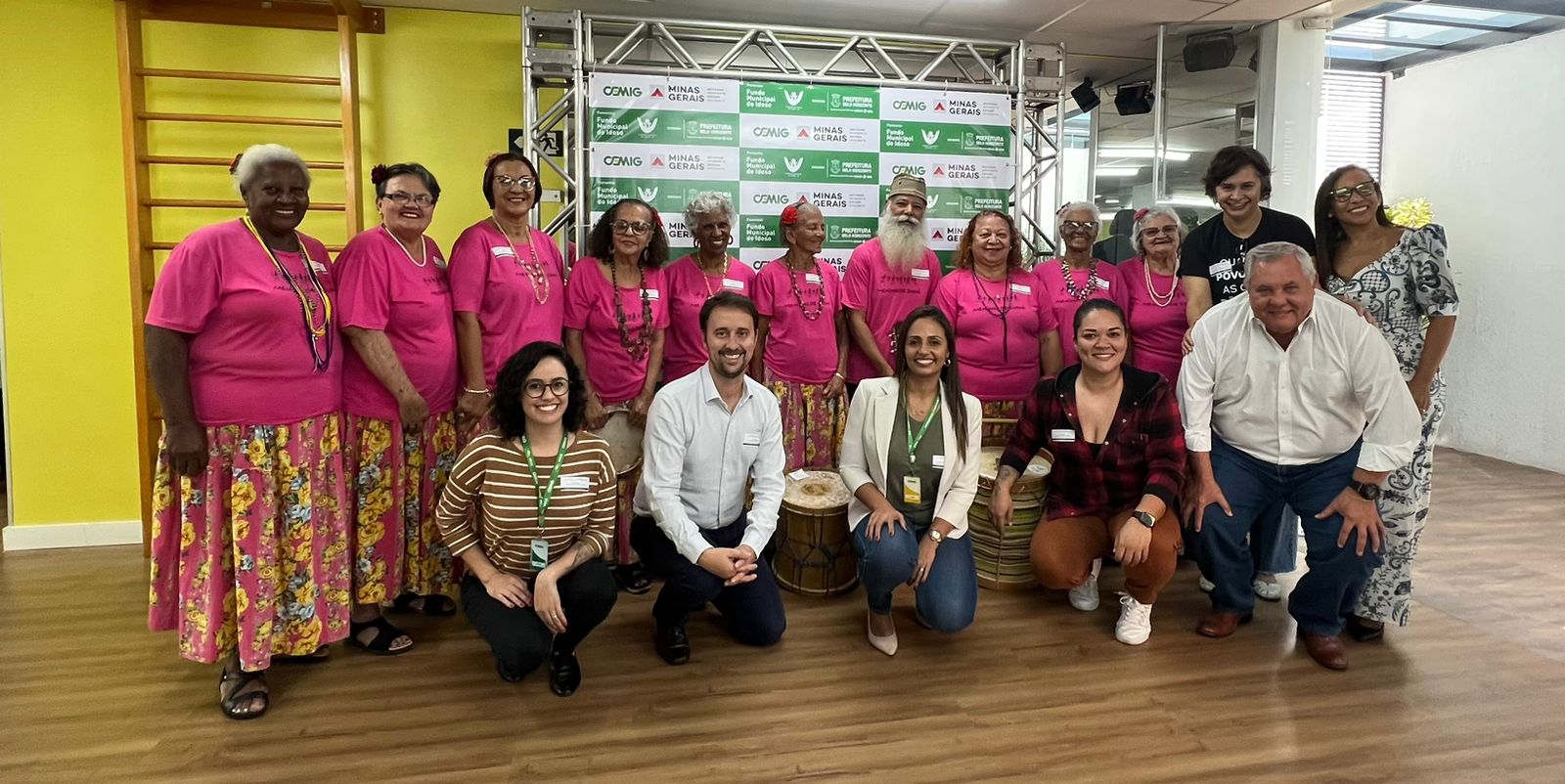 Legenda: Representantes da Cemig com integrantes do Conselho Municipal do Idoso, do Grupo Cultural Meninas de Sinhá e da diretoria do Hospital Paulo de Tarso, de Belo Horizonte.
