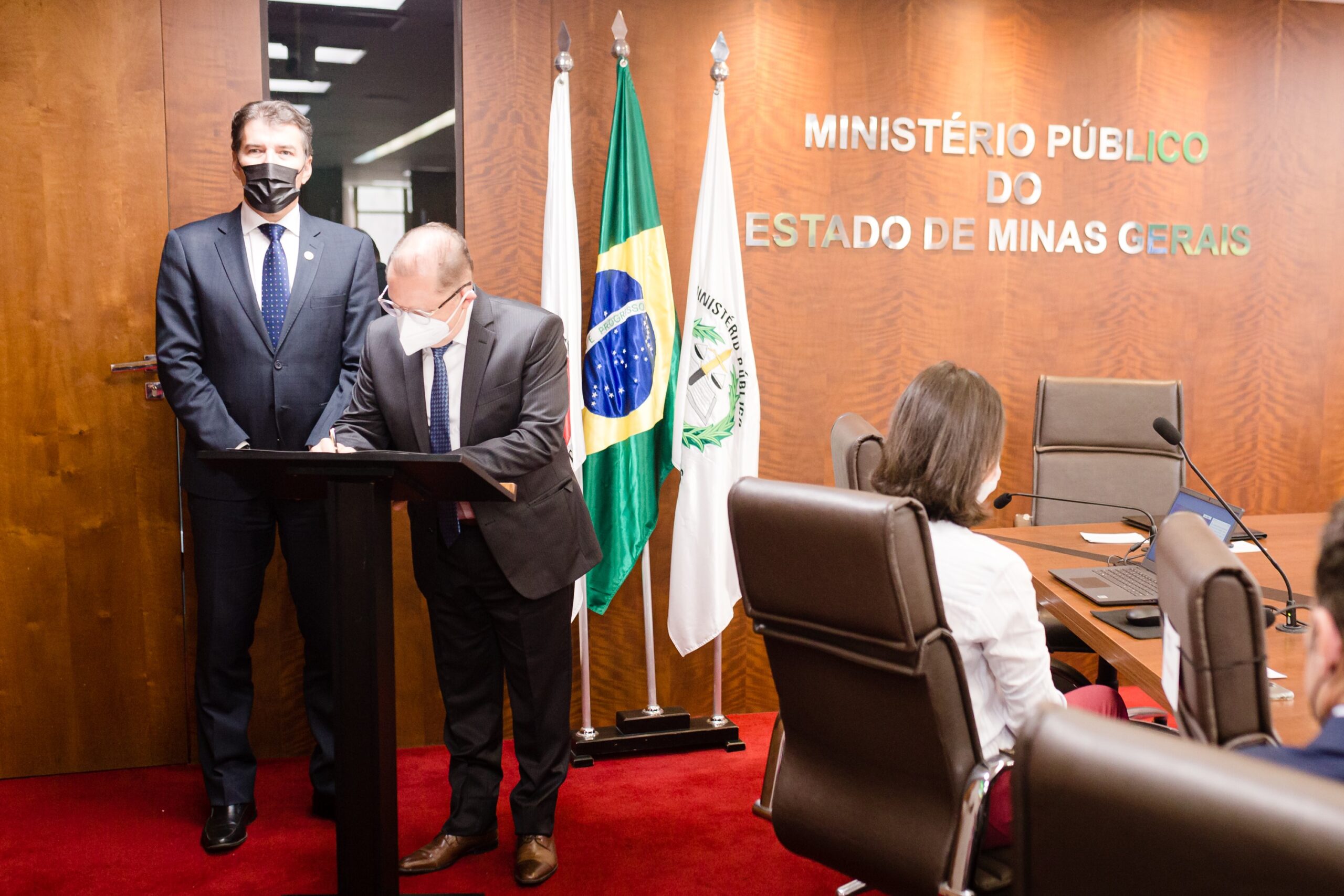 Foto 2 e 3: Presidente da Cemig, Reynaldo Passanezi Filho, à direita, e procurador-geral de Justiça do Estado, Jarbas Soares Júnior, assinam parceria para divulgar informações sobre o uso seguro e eficiente da energia elétrica.